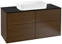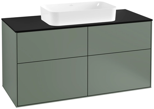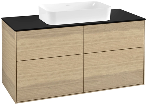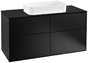 Villeroy & Boch Finion washbasin vanity unit, 4 pull-outs, with lighting, washbasin centre, with tap hole, 1200x603x501mm, Glass Black Matt