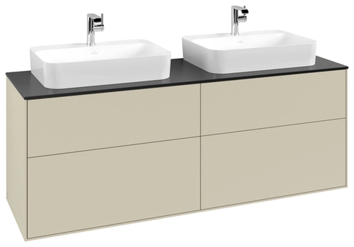 Villeroy & Boch Finion washbasin vanity unit, for 2 washbasins, 1600x603x501mm, Glass Black Matt