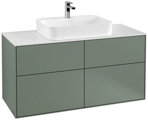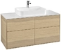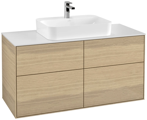 Villeroy & Boch Finion washbasin vanity unit, 4 pull-outs, with lighting, washbasin centre, 1200x603x501mm, Glass White Matt