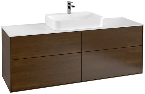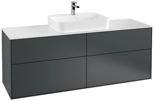 Villeroy & Boch Finion washbasin vanity unit, 4 pull-outs, with lighting, washbasin centre, 1600x603x501mm, Glass White Matt