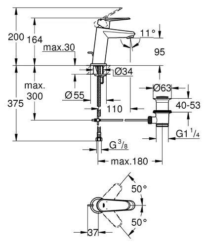 Grohe Eurodisc Cosmopolitan Mezclador monomando de lavabo, tamaño S, 110mm de proyección, desagüe automático