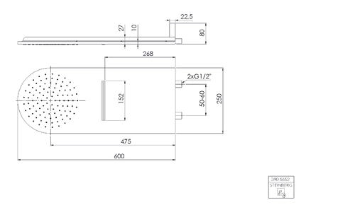 Steinberg Wall Rain ducha mural, conexión directa a la pared, Easy-Clean, función de aumento, 600x250mm