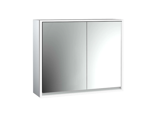 Armario con espejo iluminado loft, 800mm, 2 puertas, modelo de superficie, espejo/aluminio