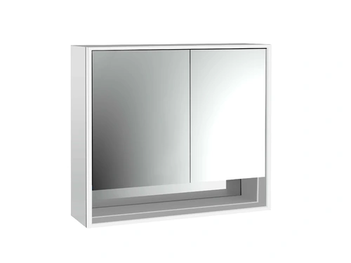 Armario con espejo iluminado loft de emco con estante inferior, 800 mm, 2 puertas, modelo de superficie, aluminio/espejo