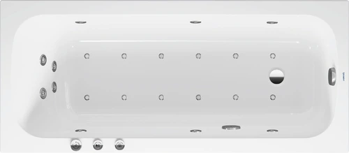 Bañera de hidromasaje Duravit Quatego, versión empotrada, 1 respaldo inclinado, marco, juego de desagüe y rebosadero, Combi-System P, 1600x700mm