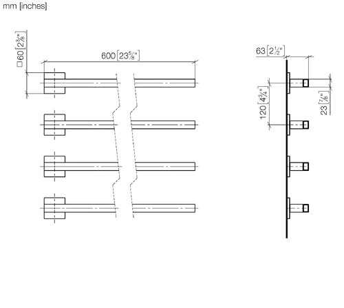 Calienta toallas Dornbracht, 4 vías, proyección derecha, anchura 600mm