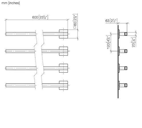 Calienta toallas Dornbracht, 4 vías, proyección izquierda, anchura 600mm