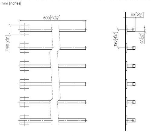 Calienta toallas Dornbracht, 6 pliegues, proyección derecha, anchura 600mm