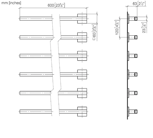 Calienta toallas Dornbracht, 6 pliegues, proyección izquierda, anchura 600mm