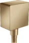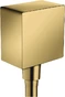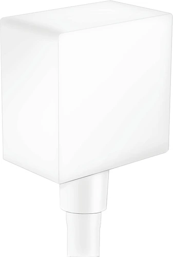 conexión de manguera AXOR Starck FixFit del tamaño de una mano, con dispositivo anti-retorno y ángulo de plástico