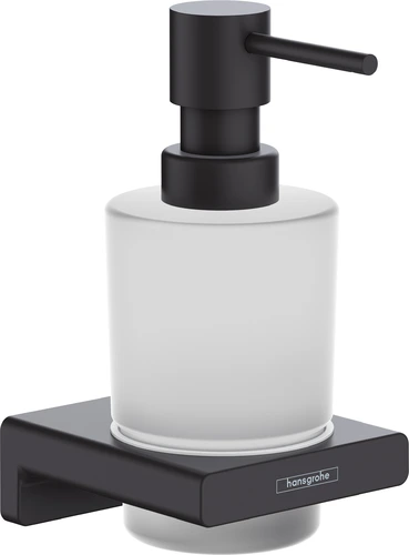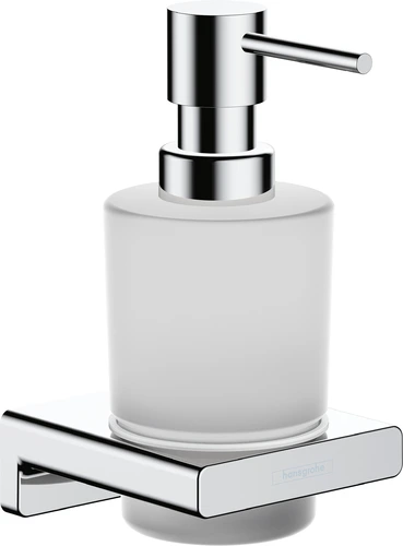 - El elegante dispensador de loción de metal y cristal se atornilla (distancia entre orificios 26 mm)