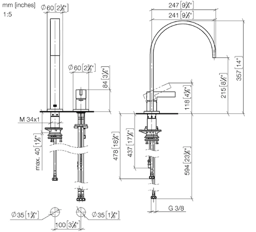 Dornbracht MEM mezclador de cocina de dos agujeros con rosetas individuales, proyección 241mm