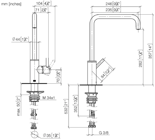 - Altura del grifo: 357 mm
