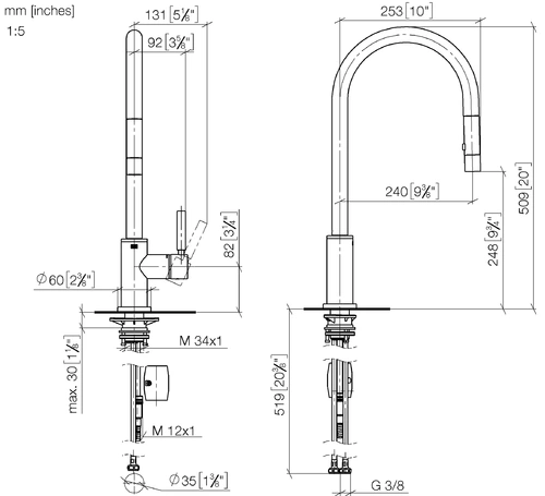 - Altura del grifo: 509 mm