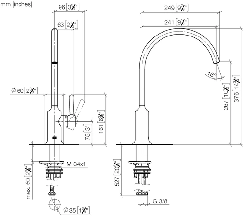 Dornbracht VAIA mezclador monomando, proyección 241mm