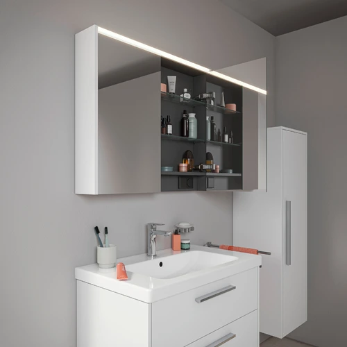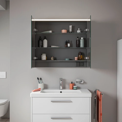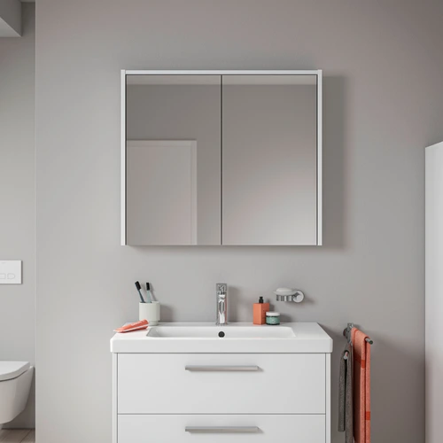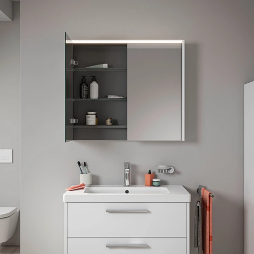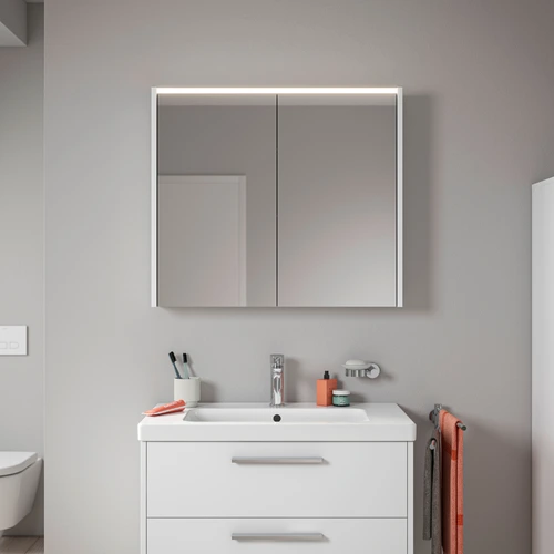 Duravit D-Code armario con espejos, toma de corriente tipo F (EU, DE), 2 puertas, panel de luz LED arriba, 800x700mm, 6 W