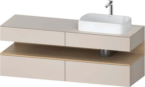 Duravit Qatego consola mueble bajo lavabo, 2 extensiones, 2 cajones, recortable a la derecha, 1600x550x600mm, nicho roble natural