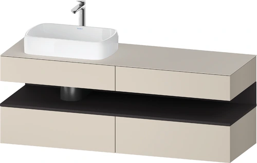 Duravit Qatego consola mueble bajo lavabo, 2 extensiones, 2 cajones, recorte a la izquierda, 1600x550x600mm, nicho grafito supermatt