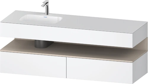 Duravit Qatego lavabo encastrado con base de lavabo consola, 1600x550x600mm, nicho taupe supermatt, lavabo izquierda