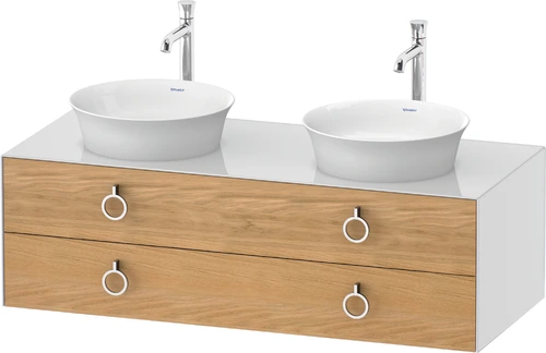 Duravit Tulip blanco, mueble de baño colgado en la pared, anchura 1300 x profundidad 550mm, con 2 cajones, con tirador