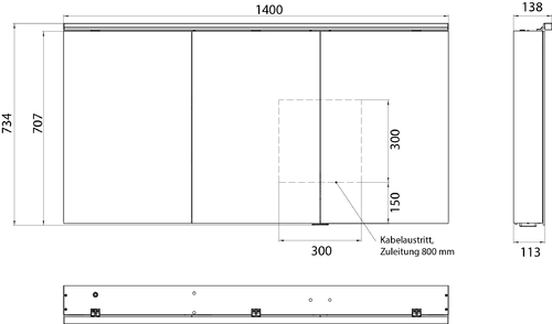 emco flat 2 classic LED Armario con espejo iluminado con luz superior, 3 puertas, 1400x711x113mm