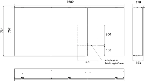 emco pure 2 classic LED Armario con espejo iluminado con luz superior, 3 puertas, 1600x711x153mm