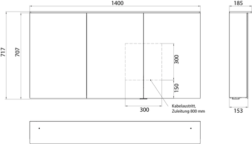 emco pure 2 design Armario con espejo iluminado con panel luminoso, 3 puertas, 1400x711x153mm