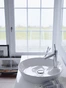 Fregadero de sobre encimera Duravit Cape Cod, de 480 mm, con isla de grifos, sin rebosadero