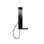- con termostato, 2 funciones ON/OFF símbolo de lluvia + teleducha, ducha superior con función de lluvia, barra deslizante con teleducha magnética anticalcárea regulable en altura, el imán se encuentra en la columna de la ducha y no en la teleducha, manguera de ducha de 50m siempre en negro mate.