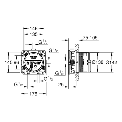 Grohe Rapido SmartBox cuerpo oculto, UNIVERSAL, 3 salidas 1/2