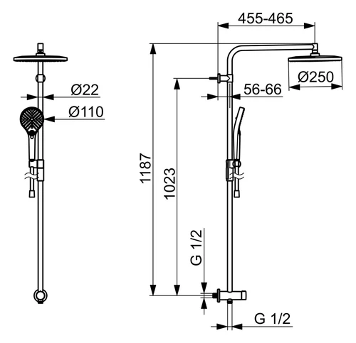 - Rótula orientable, Ducha de mano, Bloqueable en posición central, Soporte de barra de ducha ajustable, Alcachofa de ducha orientable, Manguera de ducha (1750 mm), Barra de ducha, Tecnología antical, Protección antivuelco, Protección antivuelco para la manguera de ducha, Posibilidades de montaje variables