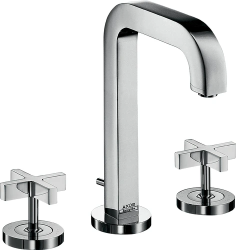 hansgrohe AXOR Citterio Mezclador de lavabo de 3 agujeros 170, juego de desagüe, caño de 140 mm, asas en cruz, rosetas