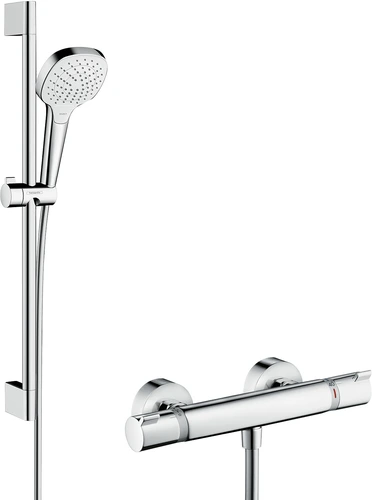 hansgrohe Croma Select E sistema de ducha de superficie Vario con Ecostat Termostato confort y barra de ducha 65 cm, blanco/cromo