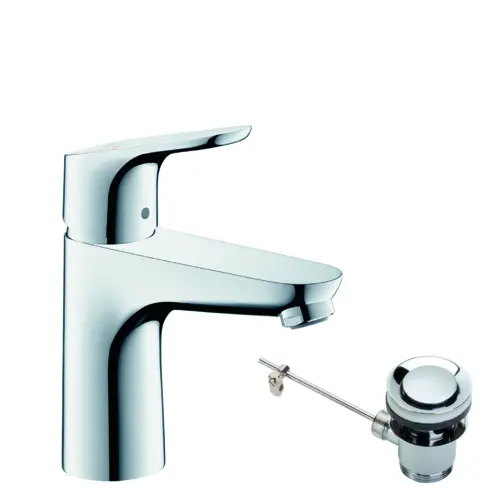 hansgrohe Focus mezclador de lavabo, CoolStart, ComfortZone100, proyección 119mm, juego de desagüe, cromo