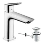 hansgrohe Logis mezclador fino de lavabo, ComfortZone110, juego de desagüe, proyección 121mm