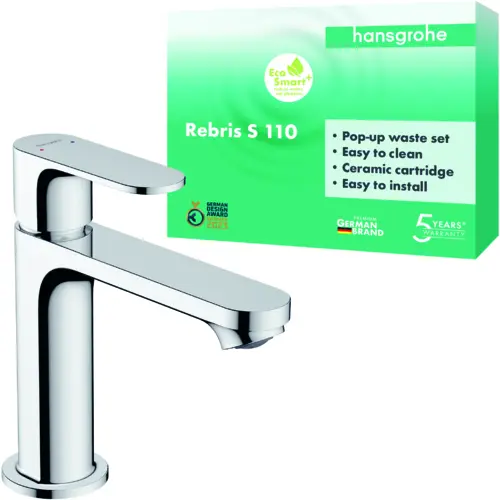 hansgrohe Rebris S mezclador monomando de lavabo 110 con desagüe automático, 133 mm de proyección