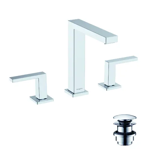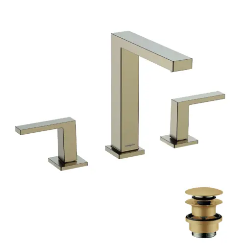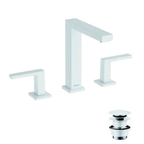 hansgrohe Tecturis E mezclador de lavabo 150, 3 agujeros, con juego de desagüe, proyección 158mm, EcoSmart+