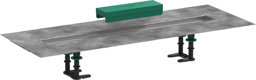 - Consta de: Canal de acero inoxidable, vellón de sellado premontado en fábrica, pies ajustables, ayuda para el alicatado.