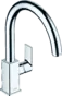 - Gran distancia entre el caño y el fregadero (ComfortZone 260), así como caño giratorio ajustable en 3 pasos (110°, 150° o 360°)