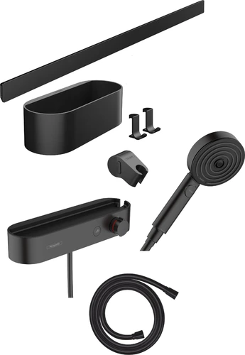 - Accesorios WallStoris que incluyen termostato de ducha, flexo y alcachofa de ducha de hansgrohe
