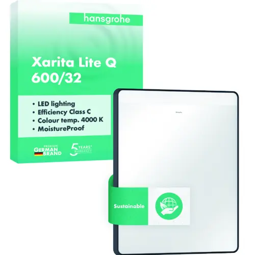 hansgrohe Xarita Lite Q espejo, iluminación LED horizontal, 600x30x700mm, interruptor de pared