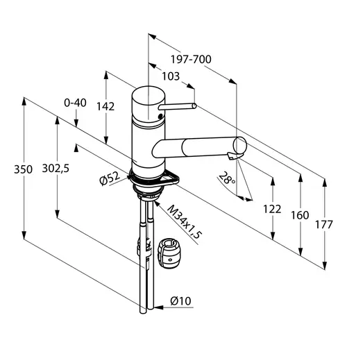 - Caño extraíble: Grifo con caño extraíble para un mayor radio de trabajo
