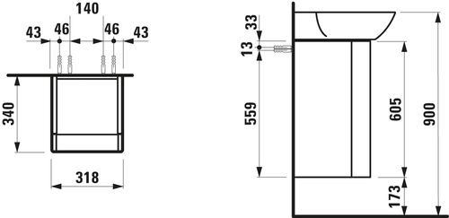 LAUFEN Ino mueble bajo lavabo, para lavabo 810302, bisagra izquierda, 320x350x605mm