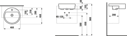 LAUFEN Living City Lavabo semi-encastrado, con rebosadero, sin agujero para grifo, 460x460mm, blanco