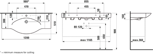LAUFEN Palace mueble lavabo, recortable por ambos lados, 1 agujero para grifo, con rebosadero, 1200x510mm