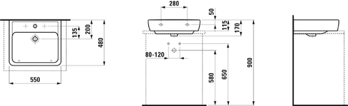 LAUFEN PRO A Lavabo sobre encimera, 1 agujero para grifo, con rebosadero, 550x480mm, blanco