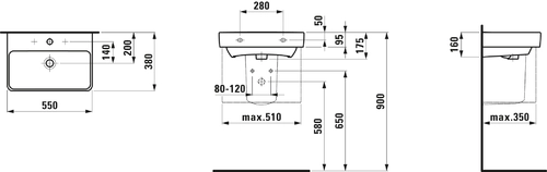 LAUFEN PRO S Lavabo compacto, sin agujero para grifo, sin rebosadero, 550x380mm