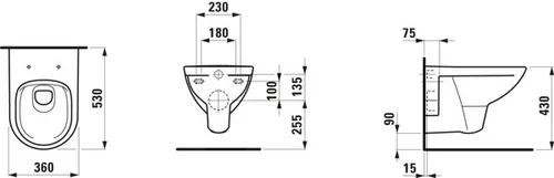 LAUFEN PRO WC suspendido, cisterna baja, sin borde, 530x360mm, fijación abierta