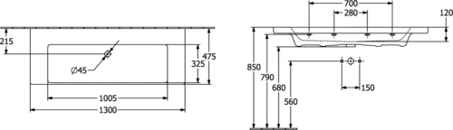 Lavabo de armario Subway 3.0 de Villeroy & Boch, sin agujero para grifo, sin rebosadero, sin pulir, 1300x475mm