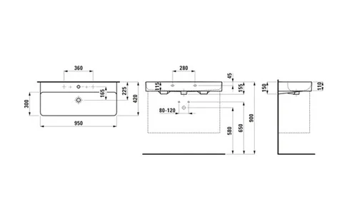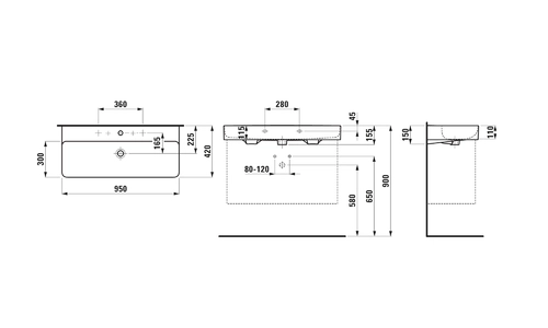 Lavabo LAUFEN VAL, bajo encimera, 3 agujeros para grifería, con rebosadero, 950x420mm